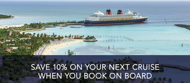 While enjoying your upcoming sailing, be sure to book a placeholder for your next Disney Cruise Line adventure and save 10%! With just a $250 deposit, you can reserve a spot to sail on a future cruise of your choice.
